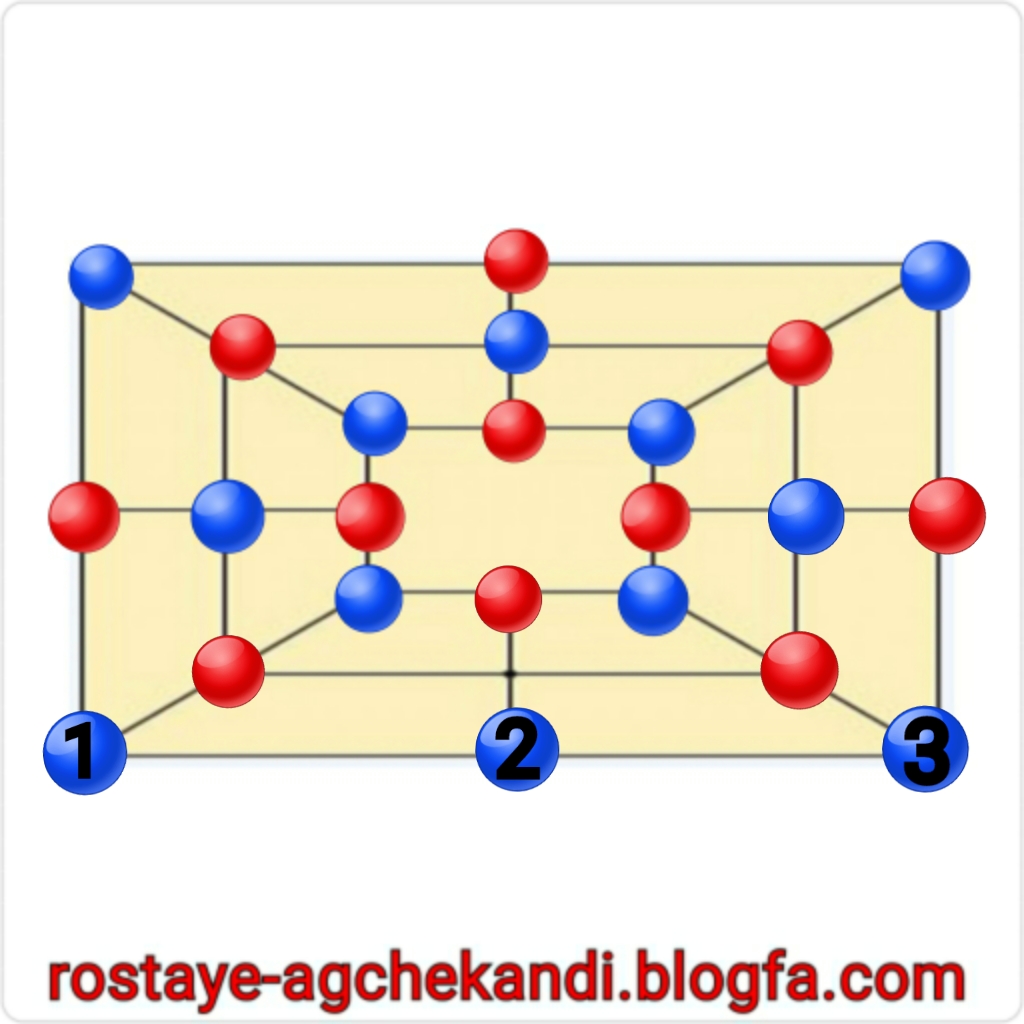 مرحله ی سوم: مانند مراحل فوق، منتهی ۴ سنگ روی زمین را در دو حرکت: ۱ تایی و ۳ تایی بر می دارد.